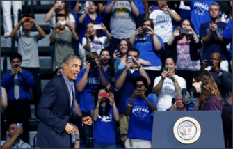 Photo: President Barack Obama is cheered as he arrives to speak at the University at Buffalo, the State University of New York, Thursday in Buffalo where he began his two day bus tour to speak about college financial aid. (Keith Srakocic/AP)