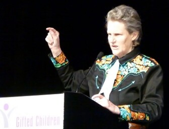 For part of her talk, Temple expressed her belief that we need teams of people working together because we need the various perspectives that people with different views and talents bring to the table. She also emphasized that verbal language isn’t the only way of thinking. Some people think in pictures, others think in patterns, others think with an auditory strength. Some think associatively, some think linearly. Some think bottom up, some think top down, some think specific to general, others think general to specific. People don’t want to accept that there’s different ways of thinking, she said. We need to get people of different types of thinking working together.