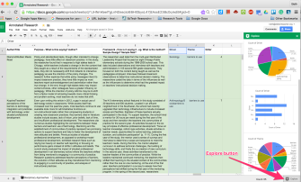However, I used those tags to identify themes for organizing my sources. As I went back and summarized each article in a Google Spreadsheet, pure magic occurred. By happenstance, something led me to click on the Explore button. At that moment, my tags became quantifiable and trends presented themselves to me.