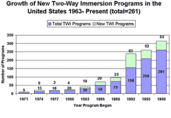 So-called dual-immersion programs, in which native English-speaking and non- English-speaking students learn together in the same class, are an idea whose time has come in a global economy, Mr. Riley said.