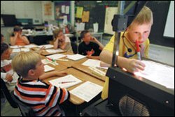 Janet Maltese’s voice rises above aural distractions, such as the humming air-conditioning unit, the clatter of students hustling through the hallway, and a lawnmower buzzing outside her classroom window. Even when she stands with her back to her 2nd grade class to write on the chalkboard, the youngsters can still hear her. But that’s not because she’s shouting.