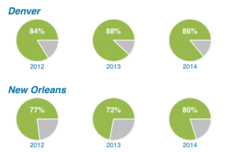 The CRPE report looks specifically at Denver and New Orleans, the first two cities to launch common enrollment systems that include both district and charter schools. The report’s authors caution not to draw too many conclusions from the study, as the systems they examined have only been around since 2012.