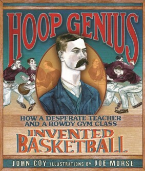 Young readers not yet immersed in the history of basketball—or curious to know more—may also find their way to the forthcoming Hoop Genius: How a Desperate Teacher and a Rowdy Gym Class Invented Basketball, written by John Coy and illustrated by Joe Morse (Carolrhoda Books). Coy, the author of numerous young adult books about sports, pursued his interest in James Naismith and the invention of basketball over the course of nine years, including extensive research and visits to various sites associated with Naismith’s life. Morse’s illustrations complement the narrative with a palette of dark, saturated colors and brown underdrawing reminiscent of sepia-toned photographs.