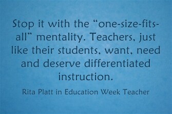 - Stop it with the “one-size-fits-all” mentality. Teachers, just like their students, want, need and deserve differentiated instruction.