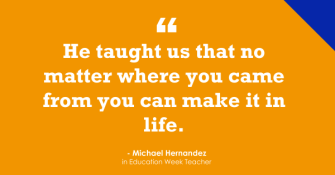 Another teacher who made an impact on me was my P.E. teacher, Ms. Coronado. She helped me through some tough times, like when my brother had gone to jail and my friend had just died. She was the one who helped me get through it.