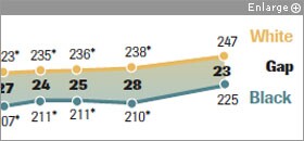 Among 4th graders, both black and white students have made significant gains in reading and math since the early 1990s, and the gap between those groups has narrowed, the study found. Yet at the 8th grade level, while the reading and math scores of African-American and white students also rose, the gaps did not close by a statistically relevant margin. U.S. Rep. George Miller, D-Calif., the chairman of the House Education and Labor Committee, saw progress in some areas but was troubled by some of the persistent disparities between minority and white students.