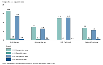 Despite improvements over the last few years, the District of Columbia’s charter schools are still suspending and expelling students at significantly higher rates than the national average, according to a report from the U.S. Government Accountability Office.