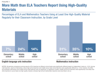 Researchers gave a list of materials to a nationally representative sample of K-12 public school teachers, and asked them to choose the ones that they used once a week or more. Then, they looked at how many teachers were using materials that EdReports, the nonprofit reviewer, had rated as “high-quality.”