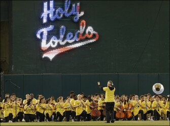 Photo: Members of the Oakland, Calif. district band kneel while performing the national anthem prior to a baseball game on Sept. 25. — Ben Margot/AP