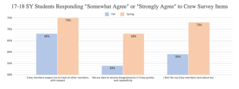 Students’ answers helped us check our assumptions about Crew. Their voices informed the design and implementation of change practices. In this way students acted as a mirror to reflect a common experience, a loudspeaker to project diverse voices, and a collaborator to improve Crew.