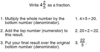 Formulas are not the only things students memorize at their peril. For many, math is learned as a series of steps to be memorized and repeated, over and over. You may remember learning a process like the one below for converting a mixed number into a fraction.
