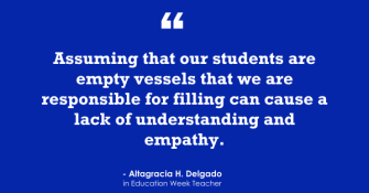 One of the most common mistakes I have found when working with teachers of ELs is the anticipation of having students with “no prior or background knowledge.” Assuming that our students are empty vessels that we are responsible for filling can cause a lack of understanding and empathy, which can harm us in the engagement of true relationships with our students.