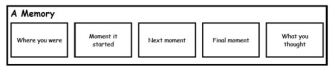 * Take out the drudgery. Could you read the structure above and write one sentence for each box? Anyone could. This yields what we call a “kernel essay,” or a skeleton essay. If students read their kernel essays to each other, they hear for themselves whether they have something worth developing with details. Thus in very few sentences, writers see that they are on the right track. If they don’t like the kernel essay, it’s easy to change. But if they do like it, they can add details to expand each sentence into at least one paragraph.