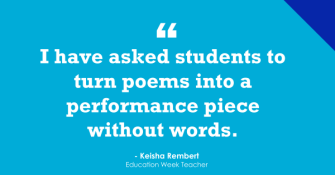 I love making poetry visual. I have turned my classroom into a jungle with poetry lines hanging from the vines. I have asked students to turn poems into a performance piece without words. I have asked students to connect poems to the design-thinking process by first asking students what is the poem “selling”? Happiness, fear, longevity. Then asking them to create a unique product that best captures the idea the poem seeks to convey. This activity engages students to reconsider how they think about and approach poetry. I find they appreciate the text because they are designing around it and have to thoroughly dissect it to create their product.