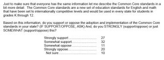 When the standards are described in complimentary terms (".. have been set to internationally competitive levels”), the survey respondents show strong backing, with 59 percent supporting the standards and 31 percent opposing them.