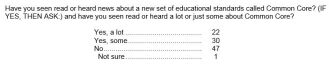 The MSN/Wall Street Journal poll, conducted by Hart Research Associates and released June 18, shows that 47 percent of the 1,000 adults surveyed have not heard of the common core. Of those who have, only 22 percent said they’d heard a lot about it. The remaining 30 percent said they’d heard “some.”