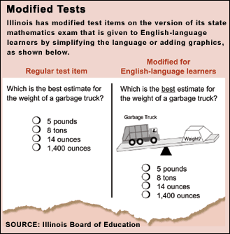 In 1996, Illinois prepared a language arts test for English-language learners. Later, it produced a simplified-English version of the state math test, which now has been in use for two years.