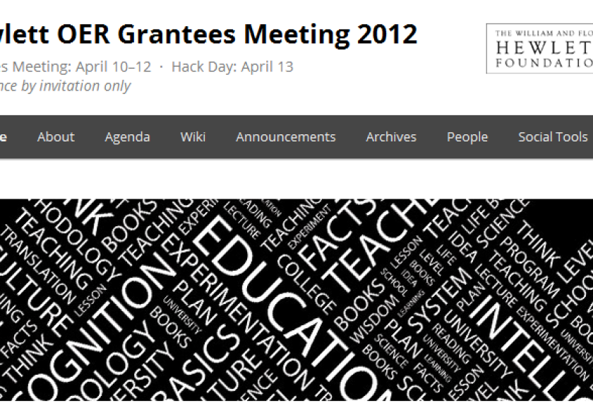 I'm spending this week at the annual Hewlett Open Educational Resources Grantee Meeting, where a group of developers, educators, and researchers are gathering to discuss the advancement of Open Educational Resources or OER.