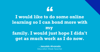My online learning experience as a student is kind of stressful; I’m not really used to technology. I am learning how to use technology, especially because I need to do my homework somehow. I did like how we can be at home, though, to bond with my family. What I don’t like is the piles of homework due on the same day. I have a teacher that makes us do our homework and makes us turn it in by 6:30 p.m. on that same day. This experience compares to my experience as a student in a physical classroom because of the workload. In the future, I would sometimes want online learning and sometimes do my education at school, even though it may be loud to concentrate sometimes. I would like to do some online learning so I can bond more with my family. I would just hope I didn’t get as much work as I do now. I want to be able to have a clear mind without worrying that I have so much homework to do.